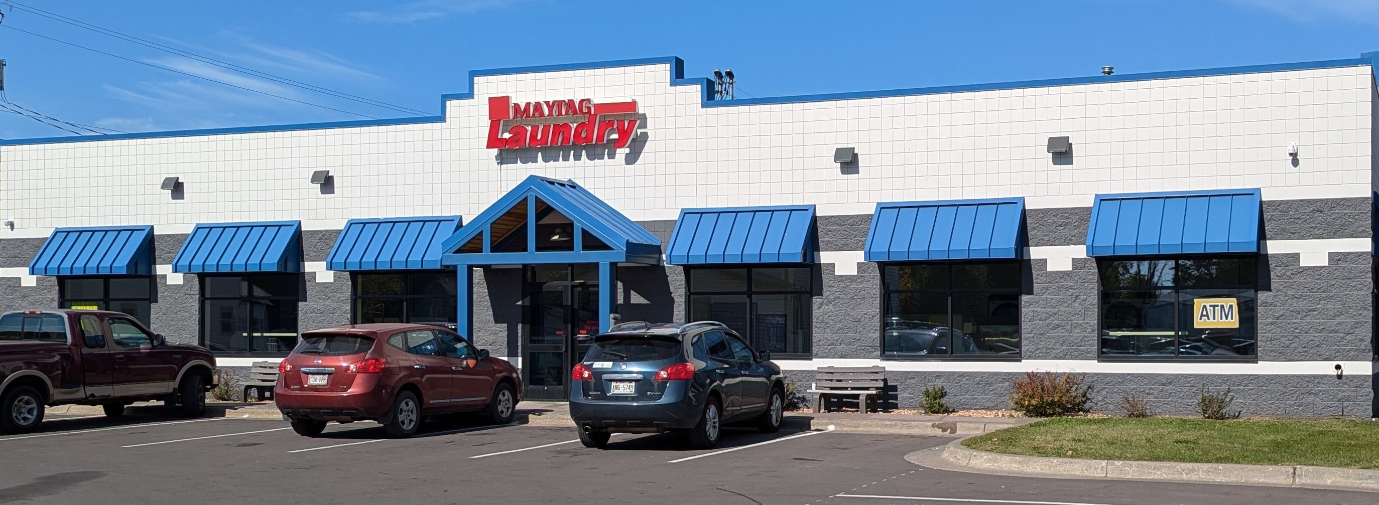 Welcome to Maytag Laundry of Superior, Wisconsin. Here in Superior, WI; we have plenty of parking, lots of high capacity washers and dryers and more than enough laundry carts, seating units and folding tables. The store is well lit, air conditioned, and we also accept cash & credit cards.